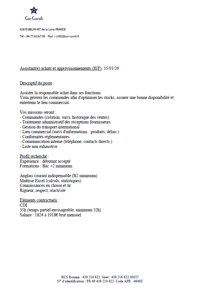 ■ BELMONT (42) – Recherche Assistant(e) achats et approvisionnements (01/2026)